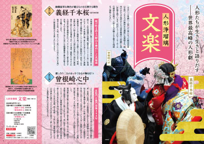 「太夫」「三味線」「人形」が一体となった総合芸術《文楽》。ユネスコの無形文化遺産にも登録され、国内のみならず海外からも「世界最高の人形劇」と評されている。人形たちが織りなす豊かな情感をぜひご堪能ください。