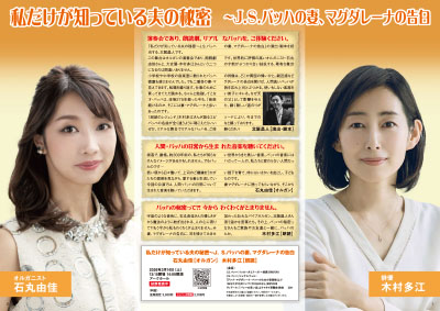 ![石丸由佳[オルガン]×木村多江[朗読] 『私だけが知っている夫の秘密~J.S.バッハの妻、マグダレーナの告白』](img/mainimg.jpg)